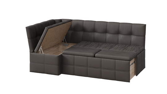 Универсальность угловой скамьи дает возможность сделать сборку как на левую, так и на правую сторону, в зависимости от планировки помещения;
