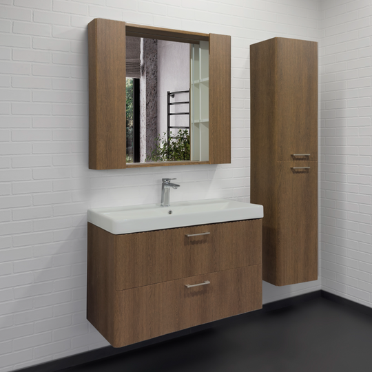 | Зеркало-шкаф Comforty Ангара 90 дуб темно-коричневый с подсветкой |