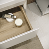 Тумба Меркадо 60 - стильное и функциональное решение для интерьеров в скандинавском и современном стиле. Корпус и фасады выполнены из МДФ в белой матовой краске. Фасады с точным запилом под 45° на торцах, что исключает видимую кромку и позволяет обходиться без ручек, создавая лаконичный и минималистичный дизайн. Два вместительных ящика изготовлены из ЛДСП «Дуб Эльвезия» и оснащены направляющими скрытого монтажа с доводчиком, обеспечивающими плавное и бесшумное закрывание. Тумба установлена на хромированные ножки высотой 10 см, а для надежного крепления предусмотрены подвесы в комплекте.