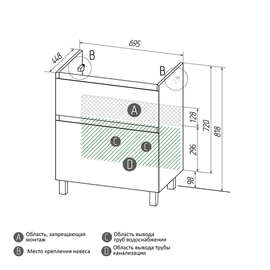 | Тумба с раковиной Grossman Меркадо 70 графит матовая напольная |