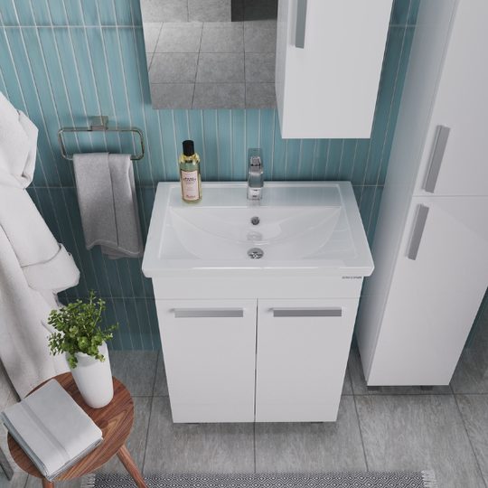 Мебель Grossman Нео 70 оснащена дверцами, за которыми спрятаны полочки. Петли с доводчиками гарантируют плавное и бесшумное закрывание. На фасадах удобно расположены стильные алюминиевые ручки в матовом хромированном цвете. Корпус и фасады изготовлены из МДФ с трехслойной краской, устойчивой к механическим воздействиям, перепадам температур и высокой влажности. Полочки из ЛДСП. Ножки тумбы прямоугольные, регулируются по высоте.