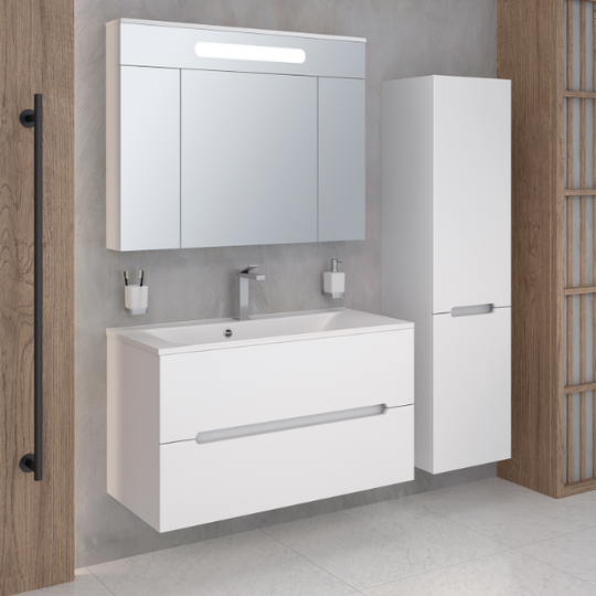 - Тумба Aqua de Marco Olivia 100 цвет "белый" с раковиной из литьевого мрамора Florentina Прима 100.