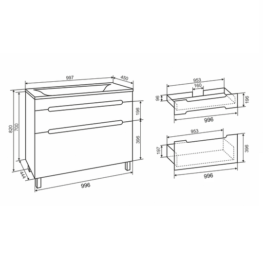 Тумба Olivia 100 оснащена двумя выдвижными ящиками на шариковых направляющих скрытого монтажа с доводчиками. Ящики легко открываются благодаря удобным вырезам на фасаде.