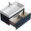 Тумба Aqwella Geometria 80 оснащена одним выдвижным ящиком на направляющих скрытого монтажа, что обеспечивает плавное скольжение и мягкое закрывание. Фасады и боковины с обработкой торцов под углом 45 градусов создают лаконичность и изящный, почти монолитный силуэт в закрытом состоянии. Все грани имеют округлую фрезеровку, обеспечивая приятные тактильные ощущения при открывании. Внутри ящиков - отделка под светлый камень, боковины выполнены из толстого тонированного стекла, что добавляет коллекции элегантности.