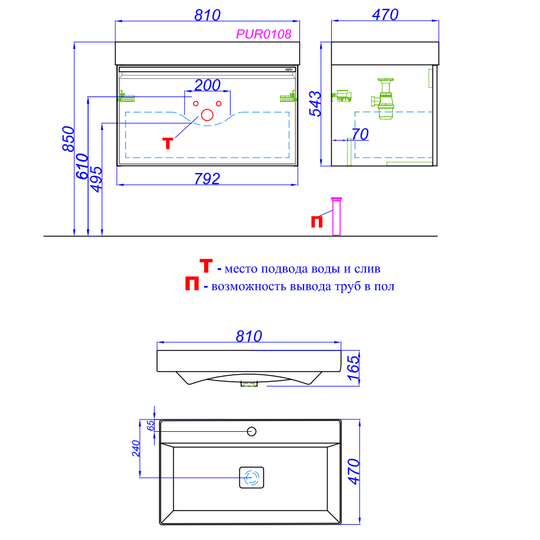 Тумба Pure 81 оснащена одним ящиком с плавным скольжением и мягким закрыванием.