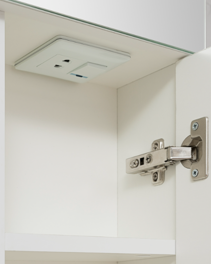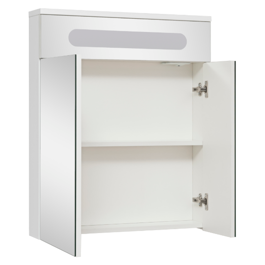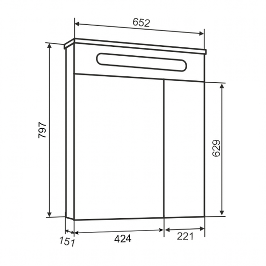 Зеркало-шкаф Olivia 65 оснащен встроенной сверху люминесцентной подсветкой и двумя распашными ассиметричными зеркальными дверцами. Блок розетка/выключатель расположен внутри шкафа. Полки под хранение обеспечивают порядок внутри. Петли на дверцах со встроенным доводчиком.