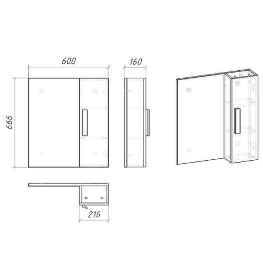 Корпус и фасады шкафа изготовлены из МДФ с трехслойной краской, что обеспечивает устойчивость к механическим воздействиям, перепадам температур и высокой влажности. Внутренние полочки выполнены из ЛДСП. Шкаф-зеркало имеет петли с доводчиками, что обеспечивает плавное и бесшумное закрывание дверцы.