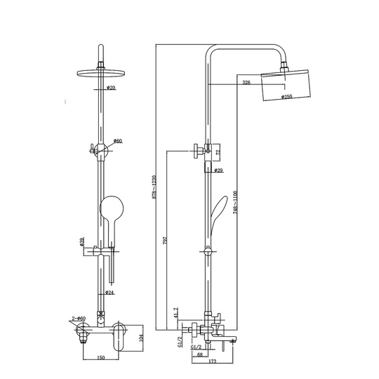 - Верхний душ круглый 25 см, материал ABS-пластик;