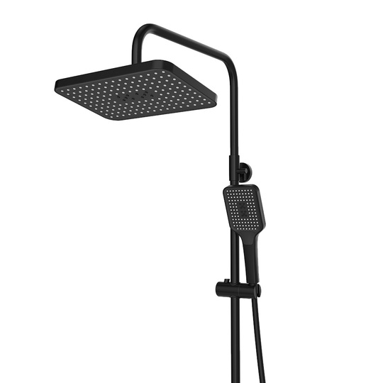 душевая стойка, верхний душ с изменяемым углом (АБС-пластик), лейка (АБС-пластик), держатель для душа, пластиковый шланг в двойной оплетке, смеситель, эксцентрик
